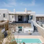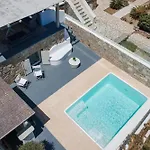 Mykonian Hills Villa tilbyder en indkvartering inden for 20 minutter i bil fra Mykonos lufthavn. Boligen har 4 værelser samt et udstyret køkken og 4 badeværelser.